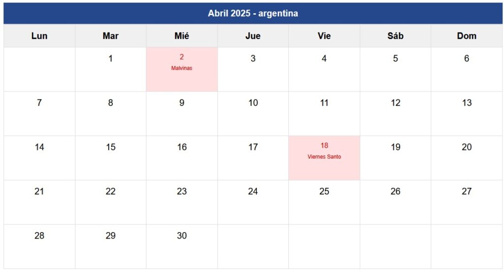 Calendario Abril 2025 Argentina