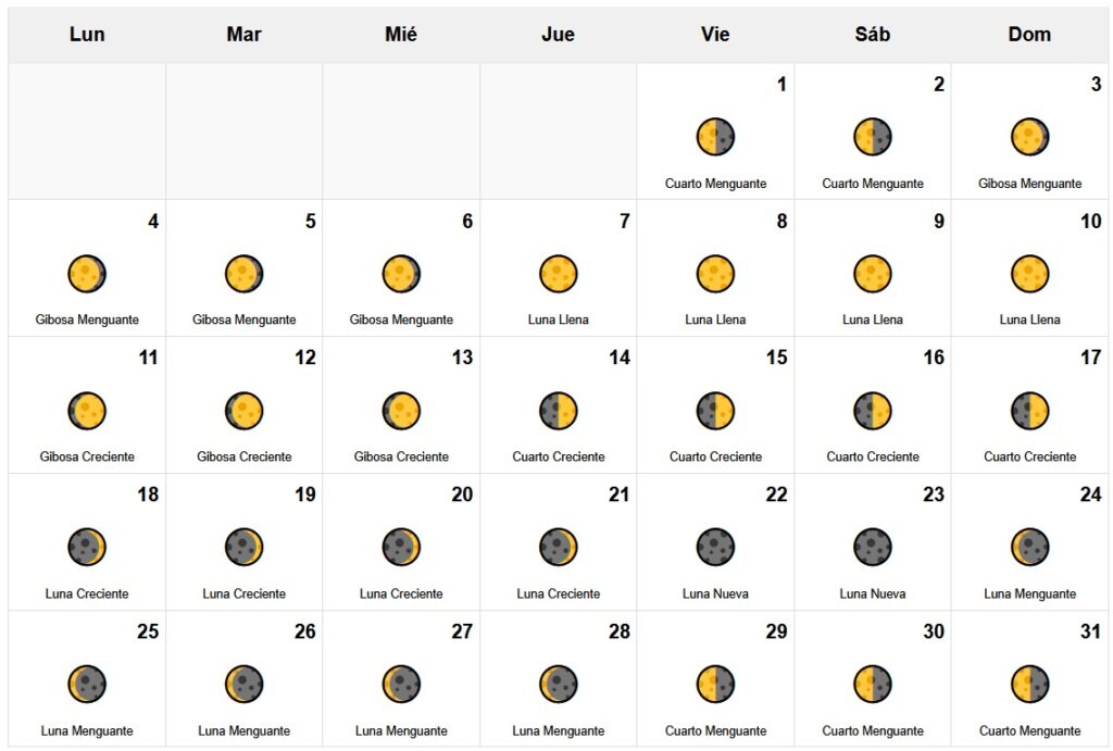 • Cuarto Menguante: 1, 2, 29, 30, 31