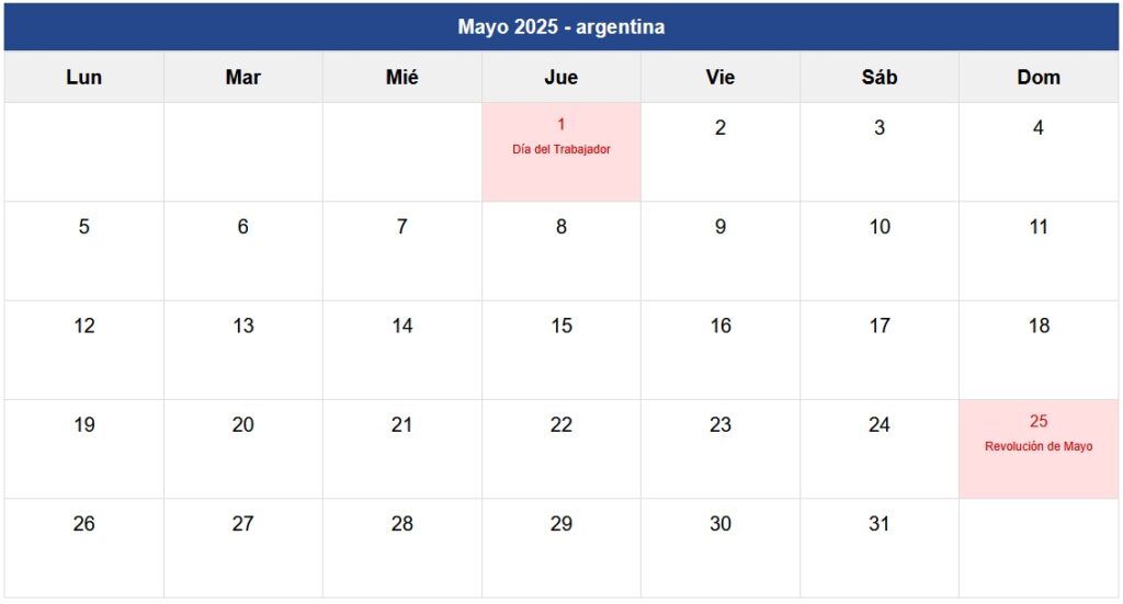 - Calendario Mayo 2025 Argentina