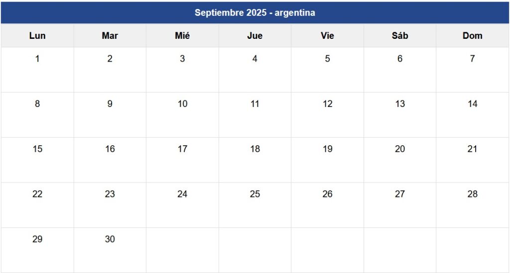 Descargar o imprimir Calendario Setiembre 2025 Argentina en PDF o como imagen